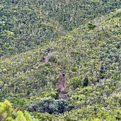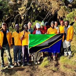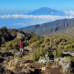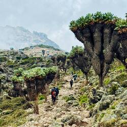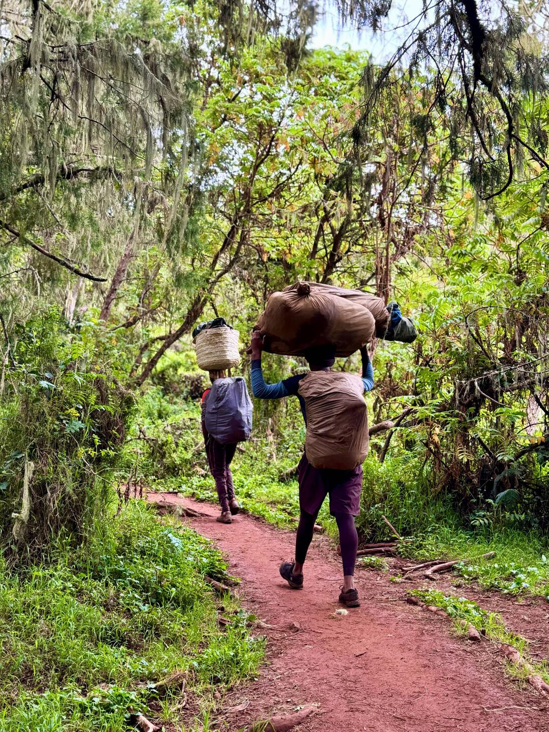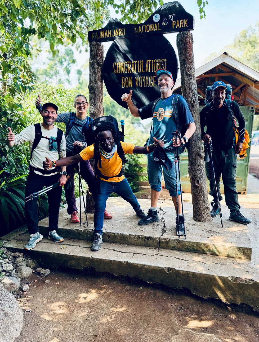 Heute war die Stimmung bei allen Beteiligten bestens. Bei unserer Crew war zu spüren, dass alle nach den 7 Tagen nach Hause wollten. Also machten wir uns früh auf den Weg, die letzten rund 9km und 1‘600 runter ins Mweka Gate. Die Zeit verging wie im Flug und wir wanderten in rund 2.5h zusammen mit Achim, unserer deutschen Bekanntschaft Richtung Ziel. (juhu, endlich.. meine Beinchen waren nach dem gestrigen langen Tag mit knapp 3000hm Abstieg schon etwas müde🫠)