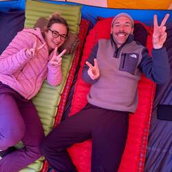 Heute waren wir bereits um 06:15 wach, nach einer sehr erholsamen Nacht. Wir haben neben der Schlafmatte der Zaratours unsere mitgebrachten Matten darübergelegt. Von der Höhe und dem Komfort, sozusagen ein Boxspring-Bett 🤣🤓.