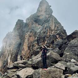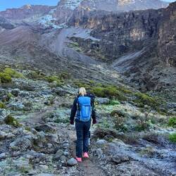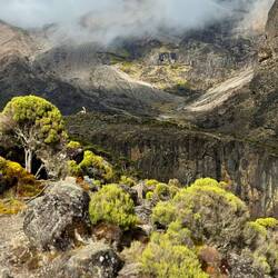Wir sind bereits um 07:30 Uhr los Richtung Great Barranco Wall (auch Breakfast Wall genannt), welche wir in rund 300hm erklimmt haben. Bekannt ist hier der „Kissing Rock“ und wir haben das Gerücht gehöhrt… eeeh in die Welt gesetzt, dass man für immer jung bleibt, wenn man die Wand küsst. Habs mal versucht, schauen wir wie es sich entwickelt😉 anschliessend gings hoch und runter und hoch und runter bis zur Karanga Hut, in der wir ein warmes Zmittag bekommen haben. (Hier hat sich bei mir leider bereits etwas die Höhenkrankheit gezeigt, mir war etwas schlecht und hatte einen sturmen Kopf) Anschliessend dann noch einmal rund 700hm rauf zum Barafu Camp, das wir nun nach rund 5.5 Stunden erreicht haben. Mit dem Wetter hatten wir heute recht Glück - am Morgen früh bis so um 10 Uhr war es strahlend schön und dann haben sich Wolken und blauer Himmel abgewechselt (obwohl sich die Wolken etwas sehr wichtig genommen haben und sich in den Vordergrund drängeln wollten - Sousieche!😒😠)