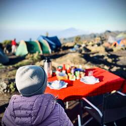 Jetzt geniessen wir etwas Ruhe, dann gibt es ein sehr frühes Abendessen und Nachtruhe. (geniessen war für mich leider weniger; wir versuchens nun mal mit einem Diamox gegen die Höhenkrankheit, die Chancen schätze ich für mich eigentlich weniger als 50%, ein, dass ich Morgen die Kili-Tour schaffen werde. Aber schauen wir mal was die nächsten Stunden bringen) Das Ziel wäre heute noch etwas Schlaf zu bekommen, bevor es um Mitternacht dann schon wieder Tagwach heisst.