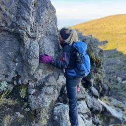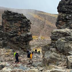 Um 8 Uhr sind wir, wie gewohnt, im gemütlichen Schritt Richtung Lava Tower gelaufen. Unsere Theorie ist ja, dass man es den Touris irgendwie schmackhaft machen muss, wenn man 700hm rauf und dann wieder runter muss um das nächste Camp zu erreichen. Muss halt dieser Felsbrocken den Grind häre ha und eine Attraktion sein😉 Der Weg war auf jeden Fall mindestens so schön wie der Lava Tower selber😄 nein, es war wirklich super heute - Beweisfotos sind ja verfügbar!