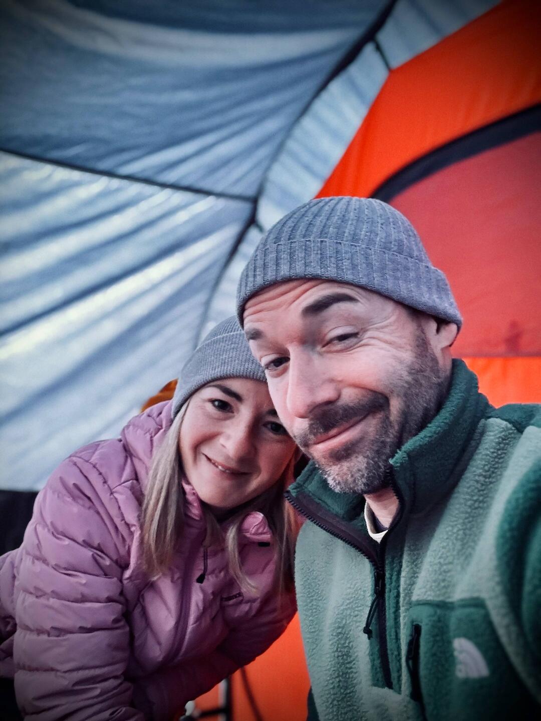 Das Wetter zeigt sich nach wie vor nicht von seiner besten Seite. Immer wieder begleiten uns leichte Schauer. (Ich glaube ja, dass der Wettergott uns schickanieren will: immer wenn wir die Jacke ausziehen wollen, kommt ein neuer Schauer..😒 und lässt man sie an, wird es doch tüppig… man sieht das opfrige Bild von mir als entsprechenden Beweis) Als wir um 13:00 Uhr unser Lager für heute erreichen, zieht gerade wieder eine Front rein, welche sich hartnäckig hält. (So sind sogar die 2 Meter Weg zum WC-Zelt eklig! Eklig ist auch, dass wir ja möglichst viel trinken sollen aber dann muss man ja allschisspott wieder bislen.. ein Teufelskreis🤪) Zum Glück sind wir im Zelt, in dem aktuell aber leider jede Spur von meinem grossen Rucksack fehlt, die die Porter von Camp zu Camp hiefen, neben diverser anderen Utensilien. Hoffen wir einmal, dass er den Weg in den nächsten Stunden zu mir findet. 🙏