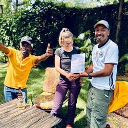 Nach einer kurzen Fahrt mit der Hälfte unserer Crew zu unserem Hotel, wurde Miriam das Zertifikat für die Gipfelbesteigung ausgehändigt. Mir blib natürlich das Nachsehen; für Schwächlinge gibts auch in Tansania keine Anerkennung 😂 Dafür ist mein Herz voll von Liebe 🤪 (ich lese das und muss grediuse lache.. jaja, das Glafer!)