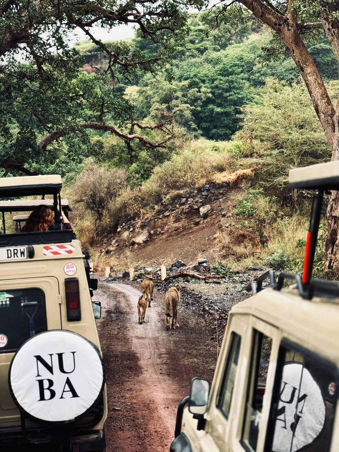 Angekommen im Lake Manyara Nationalpark, schien bereits nach wenigen Metern etwas im Busch zu sein und die Safarigefährte versuchten sich die besten Plätze zu sichern. (Zu diesem Zeitpunkt waren wir etwas enttäuscht, dass wir nicht die Affen in aller Ruhe fotografieren konnten…😒) Eine Löwenfamilie bahnte sich in aller Seelenruhe ihren Weg durch die Fahrzeuge. Hebron meinte, dass wir mit dieser Sichtung schon sehr glücklich sein konnten. Wir waren es natürlich auch; die ersten Löwen waren im Kasten 💪 Der König der Tiere schien mir aber irgendwie etwas mager 🤨