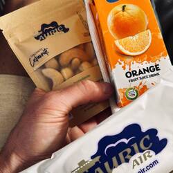 Somit konnten wir gemütlich das Morgenessen geniessen und sind dann zum Flughafen, wo die Propellermachine sogar mit 15 Minuten vor Fahrplan abgehoben hat. Zusammen mit dem Bordpersonal und Pilot, habe ich 40 Nasen gezählt. Wir hatten die Sitzplätze 1A und B und ich konnte der Stuardesse 1h tief in die Augen schauen, da sie direkt vis a vis von mir sass. (Sie hatte aber nur Augen für ihr Handy… von daher frage ich mich in welche Augen er 1h geschaut hat🤨 wichtiger zu sagen: sogar bei einem Flug von 1h 10min gibt es ein Snacki🥜🧃 - AuricAir bekommt von mir 10/10 Punkte🤪)