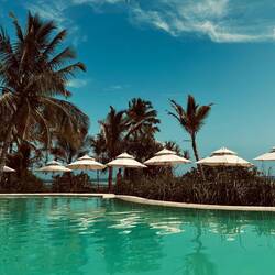 Nach rund einer Stunde Fahrt (bei der uns der Driver im kleinsten Auto von Zanzibar die Birne über lokale Gewürze und Früchte füllte!!), sind wir im Hotel angekommen. Das Studio und die Anlage sind bei der ersten Betrachtung 15/10. Wunderschön 😍Damit wir an der Silvesterparty heute Abend zuschlagen können, sind wir noch kurz (aber heftig!) ins Fitness gegangen. Krass was es hier an Geräten alles gibt - ich weiss nicht ob ich nach den nächsten 6 Tagen noch wiederzuerkennen bin💪😉