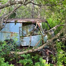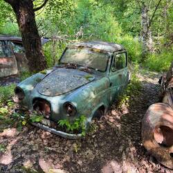 Heute challenge war das am meist mit Moos bedeckte Auto zu finden auf einem verlassenen Auto Friedhof