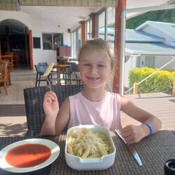 Es war eine erholsame Nacht, aber Tessa mussten wir für das Frühstück (8 Uhr wecken). Zum Frühstück gab es Pancake für alle. Eiervariation ja nach Geschmack frisch zubereitet, Saft, Obst,Read more