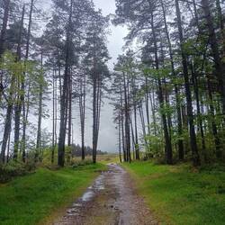 Slept rather restlessly and woke before 6, so decided to walk with the dawn and left the hostel before 7. Not that there was any sun to see; a day of cloud and rain, almost all day. Wet feet. Dry everything else, with my lovely umbrella (hmmm, do I need to give her a name? Suggestions please). Happy everything.