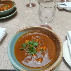 Mulligatawny soup - would have been Eurasian Centre chef Quentin's but 'Closed on Mondays' counts for soup as well as exhibition. So we ordered it at: