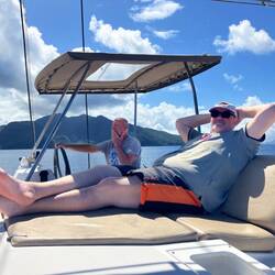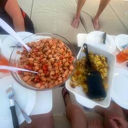 Zum ersten Mal gegessen an Deck mit tollem Ambiente