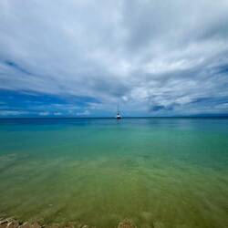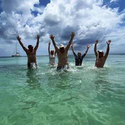 Nachdem wir heute Morgen schön im Hafen gefrühstückt haben, ging es in eine traumhafte Bucht an einen traumhaften Strand von Marie-Galante. 🏝️