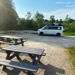 Start 9.41 Uhr nach einer perfekten Nacht mit Lagerfeuer. Allerdings waren die Mücken die Hölle und gegen alle Mittel resistent. Die Mücken haben auf uns gewartet gehabt.