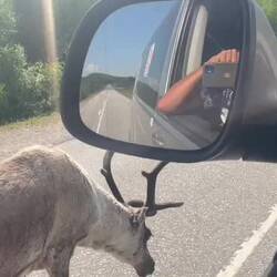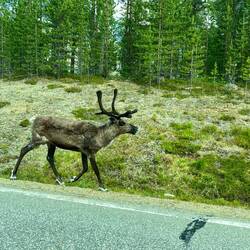 Hurra 🥳 Finnland erreicht und sofort ein Renntier neben uns 😄