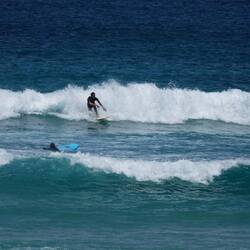 Für heute fiel die Entscheidung spontan auf den Bondi to Cogee Coastal Walk. Ich also mit Straßenbahn und Bus raus aus der Stadt nach Bondi Beach. Der Strand war schön, und nicht ganz so überfüllt wie ich befürchtet hatte. Da ich immer noch in meinen Reiseklamotten war und keine Badesachen dabei hatte, habe ich ein wenig den Surfern zugeschaut und bin dann weiter. Gerade lief die Ausstellung. Sculptures by the Sea, die wollte ich gerne mitnehmen. Was ich im Vorfeld noch für einen glücklichen Zufall hielt, habe ich aber bald verflucht. Der Coastal Walk war dermaßen überfüllt, die Schildergasse ist nichts dagegen. Und alle müssen unbedingt vor jedem einzelnen Kunstwerk ein Selfie von ihren Kindern und ihren Partnern machen. 😤
