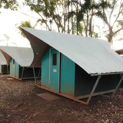 Kurz danach, ich bin gerade eingedöst, hält der Bus in Mataranka. Beim Vorbeifahren hätte ich nicht gemerkt, dass hier überhaupt ein Ort ist. Einen Moment fühle ich mich wie an der Straße ausgesetzt, wie ich da mit meinem Gepäck in der Einöde stehe. Ich laufe dann zum Motel, wo an der Rezeption die Check in Zeit handschriftlich von 17 auf 16.30 Uhr abgeändert ist. Es ist 16.55 Uhr. 😳 Ein Anruf verhilft mir zum Glück zum Code der Schlüsselbox, ich komme ins Zimmer. Bevor es dunkel wird mache ich noch schnell einen Spaziergang zum Rand des 2 km entfernten Elsey National Park, um mir die Beine zu vertreten und herauszufinden, ob und wie ich morgen zu den Bitter Springs komme. Die Termitenhügel leuchten im Licht der untergehenden Sonne, es ist einfach herrlich. Nur die Überflutungswarnungen wirken sehr deplatziert in dieser Dürre.Read more