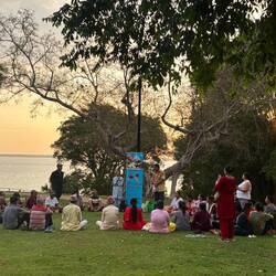 Abends kommt dann Leben in die Parks. Es wird flaniert, trainiert, zelebriert und der Sonnenuntergang angestiert. Ich mache überall ein wenig mit, nur nicht bei dem religiösen Ritual, denn dazu fehlen mir neben einer Einladung die Sprachkenntnisse, um wenigstens zu verstehen, um was es geht. Die Vögel lärmen, die Mücken schwärmen, und ich mache mich auf den Weg zum Shenannigans, um bei Live Musik und einem Pint XXXX Gold ein wenig der Übertragung der NRL Finals zuzuschauen (National Rugby League), denn die Aussies sind total sportverrückt, somit gehört das wohl zur Erfahrung dazu. Gerade spielen die Penrith Panthers gegen die Cronulla-Sutherland Sharks. Und dazu gibt es jetzt doch noch mal Krokodil, und zwar als „Bush Spice Croc“.Read more