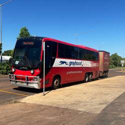 Heute geht es los Richtung Zentrum. Ich bin viel zu früh wach, der Bus fährt erst um 9.55 Uhr. Bis zur Haltestelle sind es 20 Minuten zu Fuß. In Anbetracht der Hitze und meines Gepäcks gönne ich mir ein Uber. Es ist mein erstes Mal, und es klappt ganz hervorragend und kostet keine 10 Euro. Ich plaudere mit dem Fahrer, der mir erzählt, dass er drei Jahre am Kings Canyon gelebt hat. Nach 5 Minuten Fahrt bin ich schon an der Bushaltestelle, wo ich mit einer zunehmenden Anzahl weiterer Reisender auf den Greyhound warte. Und ich staune über mich selbst: schon wieder habe ich ganz spontan und ohne groß nachzudenken jemanden angesprochen und ein Gespräch angefangen. Er ist Neuseeländer, arbeitet schon seit Jahren in Australien und fährt nach Katherine.