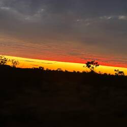 Und trotzdem: ich fühle mich im Reisemodus, und es gefällt mir. Ich mag die vielen Begegnungen mit anderen Reisenden, die kurzen Pläusche und die teilweise sehr interessanten Gespräche. So mit einem US-Amerikaner, der im Rahmen von Work&Travel auf Tasmanien Bäume gepflanzt und im Outback Sozialarbeit mit Kindern gemacht hat. Oder die australische Rentnerin, die ihr Haus verkauft hat und jetzt sechs Monate im Jahr im Camper unterwegs ist. Und ich mag auch die vielen Stunden, die ich ganz für mich mit (Hör-)Büchern & Podcasts verbringe, spazieren gehe, die Tierwelt beobachte oder auf der Fahrt die Landschaft vorbei ziehen lasse. Es ist spannend, wie sich die Szenerie verändert. Gelegentlich sehe ich Pferde, Esel, Kängurus und Kamele am Straßenrand. Und ich erlebe einen traumhaft schönen Sonnenaufgang.