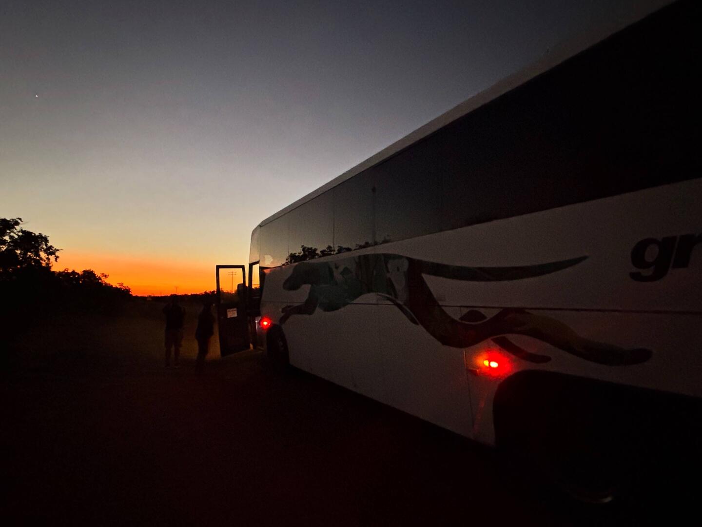 Wie heißt es so schön? „Bereitschaft zum Komfortverzicht“ erforderlich. Besonders bequem ist meine Art zu reisen wirklich nicht. Gestern habe ich stundenlang bei 38 Grad im Schatten in der Außenanlage des Motels herumgesessen, bis der Bus kam. Augenscheinlich stecke ich in Mataranka gerade am heißesten Ort meiner Route. Dann 14 Stunden bis Alice Springs. Ich bin ab und zu mal eingedöst, aber erholsamer Schlaf war das nicht. Oura schafft es überhaupt nicht, Schlafdaten zu ermitteln. 🤪 Die Essensstopps wurden an Tankstellen gemacht, hierfür mussten alle den Bus verlassen. Gegen halb eins morgens für eine ganze Stunde. Die Idee an einen Spaziergang habe ich schnell aufgegeben, weil ich mich außerhalb des Tankstellenshops nicht sicher gefühlt habe. Bei allen anderen Stopps, meist um Fracht abzuliefern, durften wir nicht aussteigen.