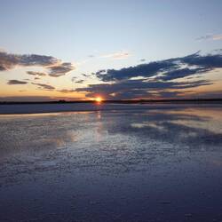 Letztes Ziel für heute: Lake Tyrell, ein riesiger Salzsee. Als ich ihn erreiche, mache ich „oh“ und „ah“, obwohl ich alleine im Auto sitze. Der Anblick ist einfach atemberaubend. Ein leichtLeia mais