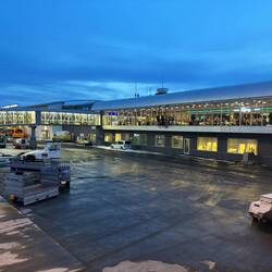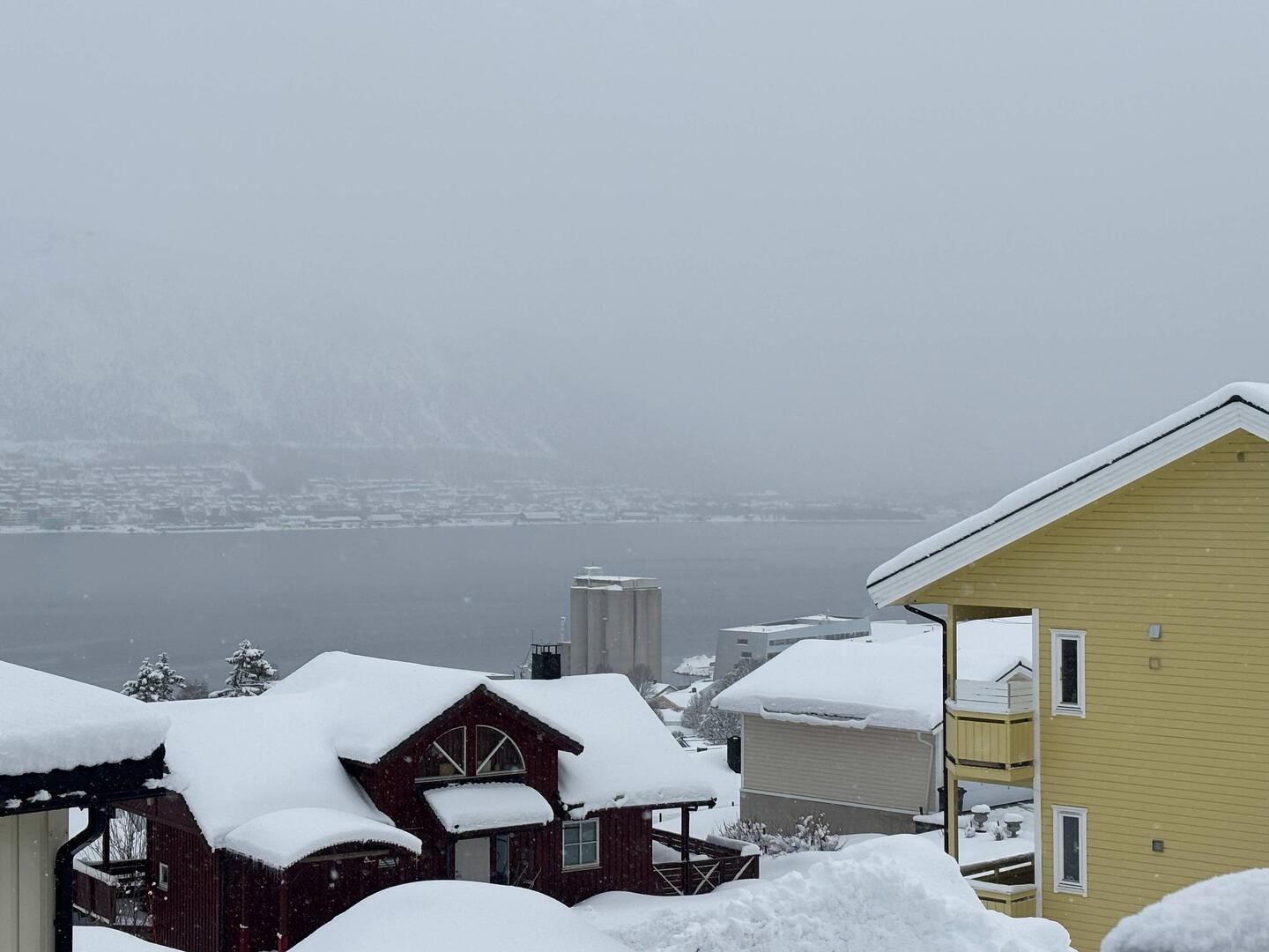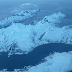 Der Flug ist leicht verspätet, und wir haben ein paar Turbulenzen. Als wir auf Tromsö zuhalten, ist die Sonne schon fast weg. Wir sehen schneebedeckte Felsen und Fjorde aus der Luft, das ist schon ein krasser Anblick.