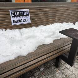 Als ich meinen Koffer endlich habe, mache ich mich auf den Weg Richtung Stadt. Beim Anblick der Menschentraube am Taxistand (kein Taxi weit und breit in Sicht), gehe ich gleich weiter Richtung Bushaltestelle (war eh der Plan). Es ist viel milder als erwartet, aber das Gehen ist alles andere als einfach. Es gibt quasi keinen Bürgersteig, beziehungsweise meistens wird er als Ablage für die Berge von Schnee und Schneematsch genutzt. Ich schlage mich durch ein Gemisch aus Schnee, Schneematsch und Wasser Richtung Bus, immer meinen Koffer im Schlepptau. Dort reihe ich mich in die lange Schlange vor dem einzigen Ticketautomaten ein. Nach einer viertel Stunde und ganz kurz vor der Ankunft des Busses ist nur noch eine Gruppe vor mir, als der Automat in den Streik tritt. Ich mache schnell ein Foto und steige ohne Ticket in den gerade ankommenden Bus ein.