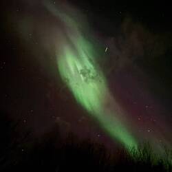 In der Stadt angekommen, sehe ich meine erste Aurora noch bevor ich die Unterkunft gefunden habe. Genau genommen sieht sie eigentlich nur meine Handykamera, denn mit dem bloßen Auge ist da nur ein leichter Schleier zu sehen. Aber immerhin, ich bekomme direkt gute Laune.