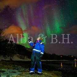 Abends geht es dann mit dem Letten Bogdan und dem Spanier Lucas von Northern Soul Adventures im Bus auf Nordlichtjagd. Erst mal warten wir 20 Minuten auf eine Gruppe aus Singapur, dann fahren wir 90 km nach Süden auf der Suche nach einem Ort ohne Wolken und Lichtverschmutzung. Nach knapp 2 Stunden haben wir diesen mit Sagelvvatnet gefunden. Die nächsten 3 Stunden verbringen wir hier im Schnee, und es ist gleichzeitig eiskalt und traumhaft schön.
