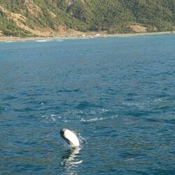 Our alarm went of at 5:00. We dressed up, had a cup of lemon flavoured yoghurt and walked the 5 minutes to the dolphin encounter office. It was still dark outside, silent and empty streets. But at the office was full of people ready for the tour. After waiting a couple of minutes in their café, we were led to a movie room to watch some scenic videos about Kaikoura. Probably to fill the time the swimmers needed to dress into their wetsuits. Once they were ready, we all got to view an instructional video about the tour. For the people who were snorkeling how to behave in the water, and for us and other watchers how to behave on the boat. Afterwards we were led to two busses which led us to two boats. That actually meant that the group sizes were quite small. Each boat carried only 16 swimmers and around 8 watchers.