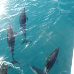 We were told that we were lucky because there were 3 kinds this morning while they usually see one or two: dusky dolphins, Héctor dolphins and common dolphins (if we remember correctly). We weren't so good in spotting the differences. We also tried asking them for a selfie with us but sadly they ignored that and just kept swimming and jumping around. So be it.