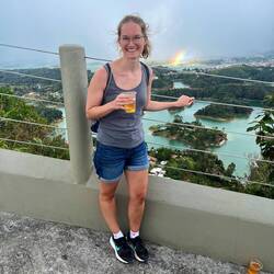 Guatapé! Only 2h in the east of Medellin you can stroll around the beautiful town of Guatapé. Even though most people visit this colorful town only on a day trip I really wanted to enjoy it and therefore stayed one night in a very cute bed and breakfast right by the lake. Once you get to Guatapé you can definitely tell why it is so touristy. The houses are just amazing and art works themselves and it is just a cute little town with its main attraction „the Rock“ only a 20 minute tuktuk ride away. Apparently from „the Rock“ which contains more then 700 stairs you have „the best view in the world“. It is true? Well I think the view is amazing but this is mainly because of the nature surrounding „the Rock“. Once we made it to the top we ordered a michelada not knowing that the beer we would get would be a combination of beer and saltwater. Some people love it here but I would have not minded skipping this experience :DRead more