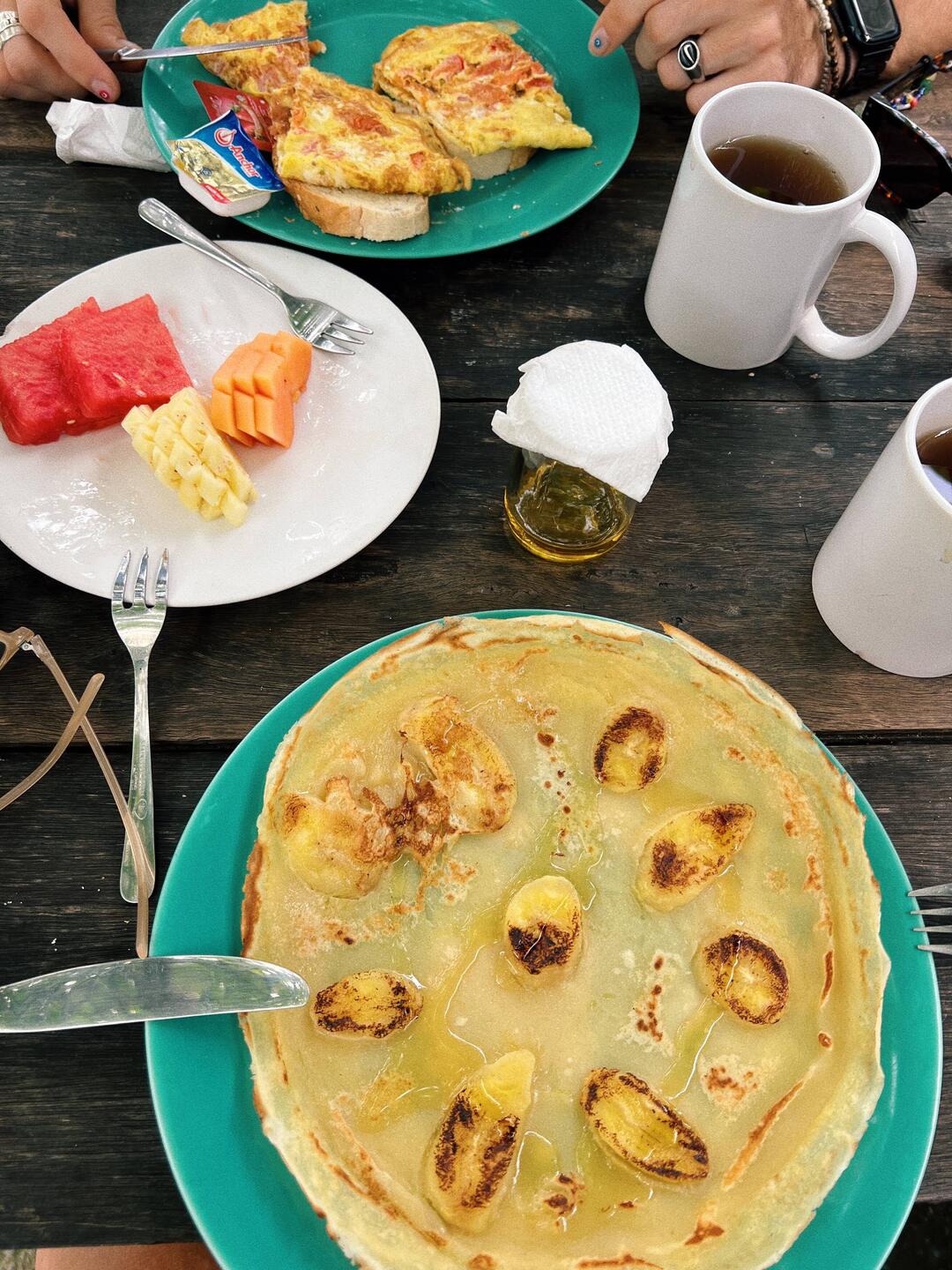 Vanochtend weer de dag gestart met een ontbijtje bij ons verblijf. Bananen pannenkoek it is.😍