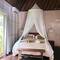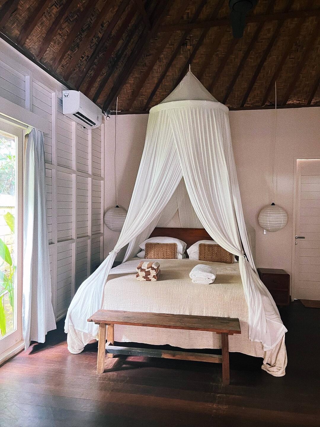 Goedemorgen! We werden vandaag weer wakker onder onze fijne klamboe.
