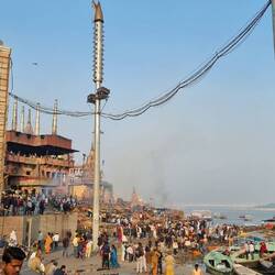 Woke up early this morning to watch ganga aarti at Assi Ghat (the southernmost ghat) - a quieter ceremony than the one we watched last night. After the ceremony, we took a boat out on the Ganges RiverMeer informatie