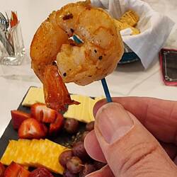 Patti cleans, whilst Jayne and I under Greg's ever watching eyes 👀 de- shell 🐚 and de-vein the shrimps 🍤.