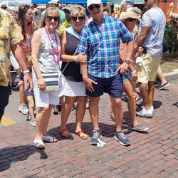 Enjoying the atmosphere from the Shrimp Fest, from Greg once again photo 📸 bombing photographs, people dressed as shrimps 🍤 or wearing 🍤 hats, a brown pelican; a bird of the pelican family,Läs mer