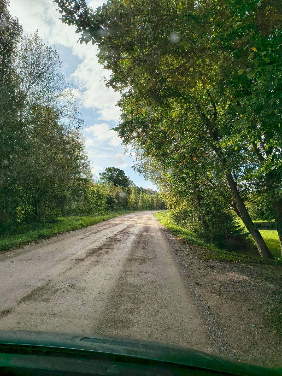 Heute morgen sind wir bei Sonne losgefahren , sind über Land unbefestigte Straßen nach Kleipeda gefahren.