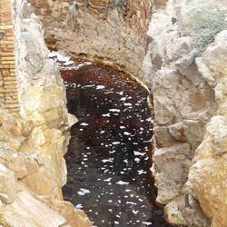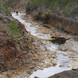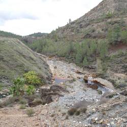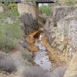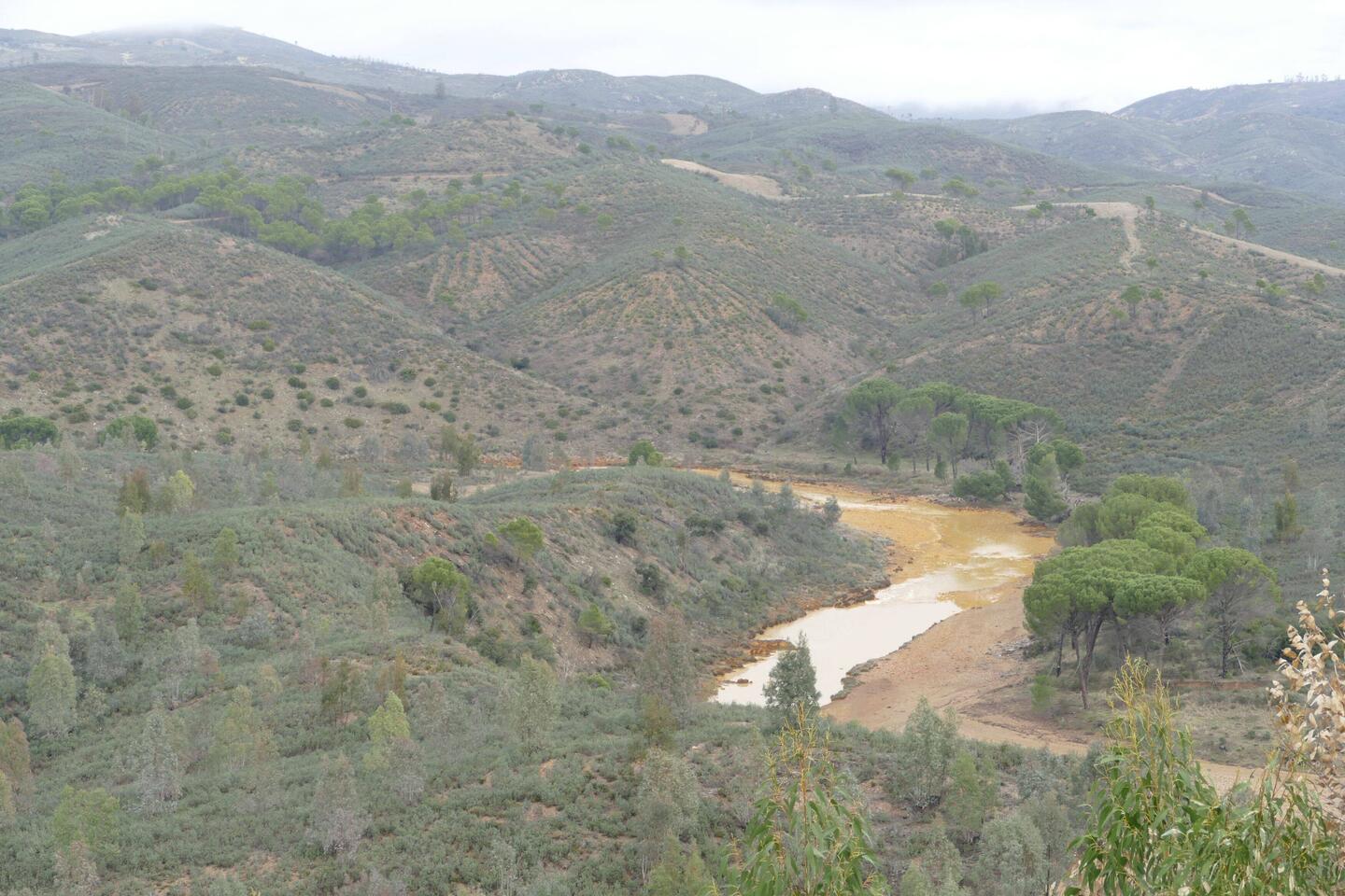 Nach einer unerwartet ruhigen Nacht fuhren wir weiter nach Riotinto. Hier haben wir dann einen kleinen Spaziergang am Fluss entlang gemacht. Die Farbe des Flusses stammt von Mineralien die das WasserLæs mere