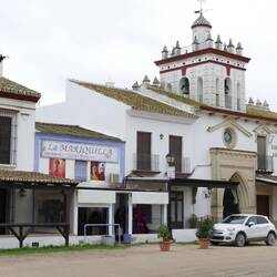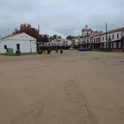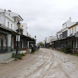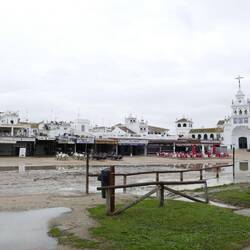 Regentag! Deshalb fuhren wir spät los. In einer Regenpause hielten wir in El Rocio. Hier schlenderten wir durch unbefestigte, sandige Straßen. Im Sommer sind sie staubig, jetzt matschig. El RocioLæs mere