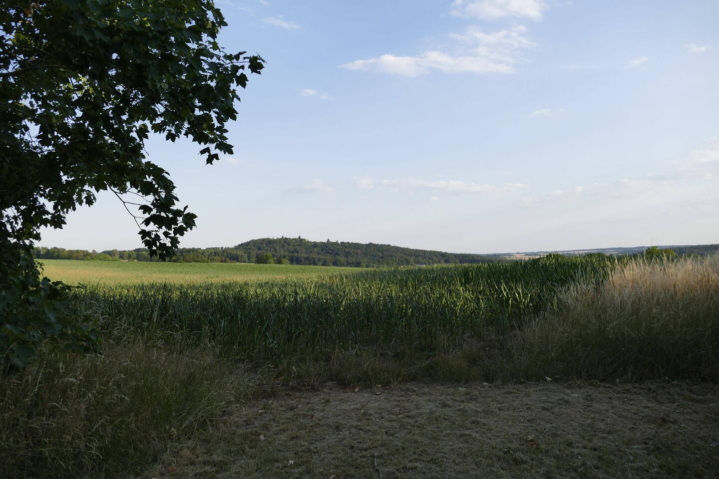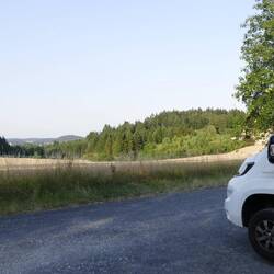 Fahrtag mit Klimaanlage um die Hitze erträglicher zu machen. Ahorn liegt in der Nähe von Coburg, hier haben wir auf einem Wanderparkplatz übernachtet.