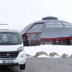 Da es heute stark geregnet hat sind wir ans Polarkreiszentrum durchgefahren. Das Wetter wechselte von Regen auf Schnee. Am Polarkreiszentrum haben wir auch unser Nachtlager aufgeschlagen.