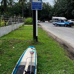 Danach brachte uns ein 'Taxi-Truck' zur Board Factory. Hier hatte Tanja ein Treffen mit Martin arrangiert, dem Besitzer von Sunova Boards, einer bekannten Marke in der SUP/Surfing-Welt. Nach einer interessanten Führung durch die Fabrik mietete Tanja ein Brett (kostenlos!) und paddelte eine Strecke (7 km) über das Meer. Währenddessen machte ich (Nynke) einen schönen Spaziergang am White Sand Beach. Es ist schon seltsam, wenn man bedenkt, dass der Tsunami hier im Jahr 2004 alles zerstört hat. Dieser Küstenstreifen war eines der am stärksten betroffenen Gebiete. 😕