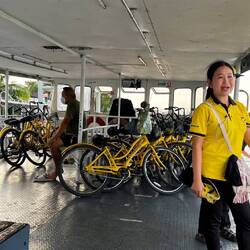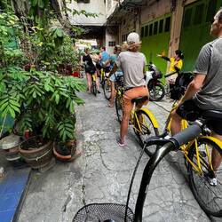 Am Nachmittag haben wir die berühmte Co van Kessel Fahrradtour gemacht. Wenn ihr jemals nach Bangkok kommt, solltet ihr das unbedingt auch machen! In kurzer Zeit kommt man an vielen verschiedenen Orten vorbei (sowohl touristisch als auch abgelegen). In drei Stunden besuchten wir China Town (obwohl wir es schon selbst erkundet hatten) und besuchten den Kanlayanamit-Tempel. Wir tranken einen Kaffee im Prayurawongsawat-Tempel und nahmen dann eine Fähre über den bekannten Chao Phraya-Fluss. Der Unterschied zwischen Arm und Reich wurde während der Tour sehr deutlich... Die pompösen Tempel mit viel Gold standen im krassen Gegensatz zu den benachbarten 'Hütten' mit oft nur einer schmutzigen Matratze. Ziemlich intensiv zu sehen.