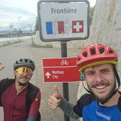 Mittwoch war der absolute Tiefpunkt bei Dauerregen und 12 Grad rund um Straßburg sieht man auch nahezu keine anderen Radreisenden mehr - die sind ja im Gegensatz zu mir nicht völlig doof. Das wiederrum heißt das alle die man noch trifft ähnlich bekloppt wie man selbst, und damit potenzielle Freunde, sind. Mel, einen Belgier habe ich dann beim Wasser nachfüllen am Wegrand aufgegabelt. Er ist sogar so irre, dass er in diesem Sch***-Wetter ohne Regenklamotten radelt. Also sind wir zwei dann den Rest des Tages zusammen durch das tolle Wetter gedüst immer fleißig raus aus Straßburg und in Richtung Basel.