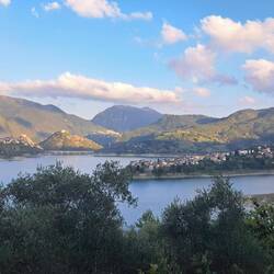 Auch bei Nonna Viola in der Trattoria Dea, am kleinen Dorfplatz mit Brunnen und Blick über den See, ist die Küche für heute schon zu. Also wieder aufs Rad, dann wirds wohl das Tütenrisotto auf dem Campingkocher. Im letzten Moment kommt dann in Viola wohl doch die Nonna durch, werde ich doch noch vom Rad gewunken und der Bub' kriegt noch was zu essen. Hinsetzen, Bier aus dem Kühlschrank nehmen, Viola regelt das schon, rettet mir noch fix den Abend. Schnell wird noch etwas Nudelteig durchgeleiert, ein paar Bratkartoffeln und Lammkoteletts in die Pfanne gehauen. Mein Italienisch ist immer noch schlecht, aber so wie sie mit ihrer Küchenschürze und der Hand auf meiner Schulter neben mir am Tisch steht heißt das was sie sagt wohl "gell schmeckts dir Bub'?" - einzig zulässige Antwort "molto bene, grazie mille" - und wie es schmeckt. Danach gibts noch etwas Dolce, was Süßes, ein wenig Kuchen - es ist 20:30 Uhr, der Tag ist gerettet, das Leben ist schön. Jeder noch so verfluchte Kilometer war es wert, wiedermal.