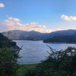 Ach was hätte man es gemütlich haben können, wäre man morgens zeitig aus den Federn gekommen. Aber mein Arsch wusste was ihm bevorsteht und so blieb er noch ein bisschen im weichen Bett, drum' wirds abends wieder knapp. Das heutige Ziel, der Lago del Turano, genauer gesagt in der Abendsonne noch reinhüpfen, den Dreck und Schweiß des Tages runterwaschen, einmal halbwegs sauber fühlen als Tagesziel - mehr braucht es nicht. Dafür wurde schon die Mittagspause geopfert, alles wichtige Tagesstunden zum Radfahren, essen kann man auch im dunkeln, radeln sollte man besser nicht. Aber der letzte Anstieg zieht sich und zieht sich, die Sonne steht im Westen nur noch knapp über den grünen Berghängen als endlich vor mir die kolossale Staumauer auftaucht. Links der Staumauer führt eine steile Wiese zum See, mit dem Rad da wieder hochkommen wird ein Spaß aber egal - zum See, zur Freiheit, zur Sonne. "proprietà privata - divieto di accesso" - Gott sei dank ist mein Italienisch viel zu schlecht um Verbotsschilder zu lesen. Hinter mir liegen 1.550 hm, 125 km und den ganzen Tag Gegenwind, was hab ich heute wieder geflucht. Aber einmal ins blaue Nass hüpfen und plötzlich ist all das mit einem Mal schöne Erinnerung, alles gold, alles schick. Fünf Minuten Abendsonne, ein See in den Bergen und all das war es wieder mal Wert.