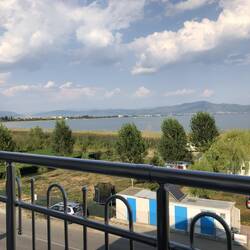 Nun sind wir hier im Hotel am Ohrid See und genießen den Blick über den See, übrigens hat das Zimmer 22,50 Euro gekostet 😲😊😀