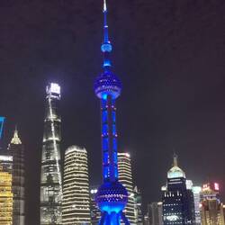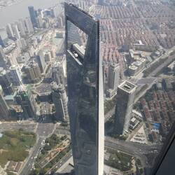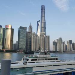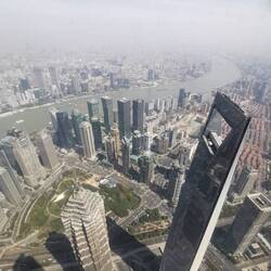 Um 9 Uhr auf den Bund und durch den Tunnel mit der Magnetschwebebahn auf die andere Seite des Flusses. Auf den Shanghai tower. 632m hoch. 2. Hoechstens gebaeude