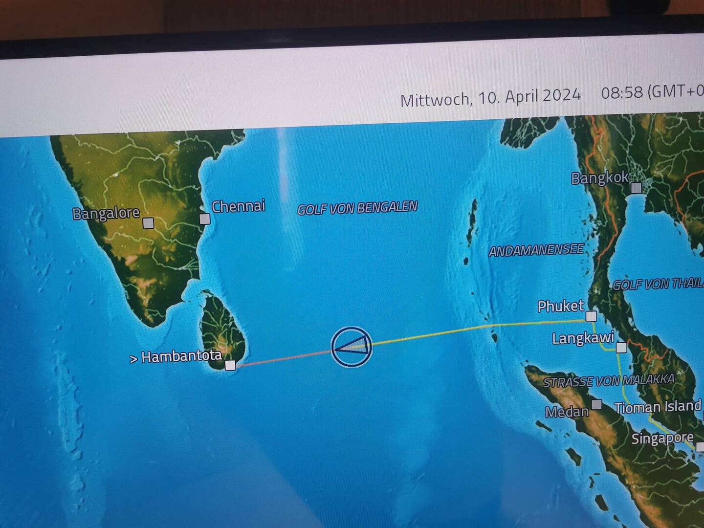 Weltreise mit der ArtaniaTraveler2. Tag im Golf von Bengalen April 10, 2024, Bay of Bengal ⋅ ☁️ 28 °C 0 likes Show trip